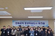 정안뉴스 안정주 기자 | 2025년 전북권역 평생학습도시 워크숍이 지난 11일 부안군 일원에서 개최됐다. 이번 워크숍에는 전북권역 11개 시‧군과 전북특별자치도, 전북평생교육장학진흥원등 30여명이 참여하여 평생학습도시간 협력 강화와 미래 학습도시 발전 방향을 함께 모색했다. 워크숍은 특강과 청우평생학습관·줄포만 노을빛정원 워케이션센터·청자박물관 등 주요 거점 탐방으로 구성됐으며, 실무자들은 다양한 현장을 직접 경험하며 평생교육 운영 전반에 대한 이해를 높였다. “기획의 관점을 바꾸기 위한 창의적 기획법” 특강을 통해 실무자들은 지역 여건에 맞는 평생학습 사업을 설계하고 추진할 수 있는 기획 역량을 한층 강화했다. 또한 부안의 생태·문화 자원을 활용한 다양한 사례를 접하며 각 지자체가 적용할 수 있는 실천적 아이디어와 지역 특화 학습도시 모델에 대한 인사이트를 확보했다. 권익현 부안군수는“이번 워크숍을 통해 전북권 학습도시간 협력이 더욱 견고해졌다”며,“부안군은 평생학습 대표도시로서 전북권역의 학습도시 발전을 선도하고, 시군을 연결하는 가교 역할을 적극적으로 수행하겠다”고 말했다. &nb