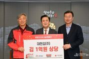 정안뉴스 황도연 기자 | 충남도는 대천김으로부터 1억원 상당의 김을 기탁받았다고 27일 밝혔다. 이날 도지사 외부접견실에서 열린 전달식에는 김태흠 지사를 비롯해 최민순 대천김 총괄대표, 성우종 충남사회복지공동모금회장 등이 참석해 나눔의 의미를 함께했다. 이번에 기탁된 김은 충남사회복지공동모금회를 통해 경제적 어려움을 겪고 있는 이웃들에게 전달될 예정이다. 김 지사는 “지역 기업의 따뜻한 나눔이 취약계층에게 큰 위로와 도움이 될 것”이라며 “기탁된 물품을 꼭 필요한 분들께 전달하겠다”고 말했다. 최민순 총괄대표는 “지역사회와 함께 성장해온 기업으로서 어려운 이웃에게 조금이나마 보탬이 되고자 했다”며 “앞으로도 지속적인 나눔을 통해 사회적 책임을 다하겠다”고 답했다.