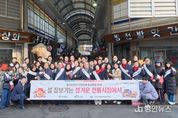 정안뉴스 황도연 기자 | 설 명절을 앞두고 김태흠 충남도지사가 전통시장을 찾아 상인들과 소통하며 현장의 목소리를 청취했다. 김 지사는 13일 전통시장 현장 점검 및 활성화 방안 모색, 상인을 비롯한 도민과의 소통 등을 위해 천안 중앙시장을 방문했다. 김 지사는 이날 천안 중앙시장을 찾아 유제흥 상인회장과 상인들을 만나 현장의 어려움을 들은 뒤, 명절 성수품을 직접 구매하며 상인들을 격려했다. 이어 시장 곳곳을 살피며 상인들의 고충을 듣고, 물가 안정·소비 촉진 캠페인도 진행했다. 또 경기 침체로 어려움을 겪고 있는 전통시장에 활력을 불어넣기 위해 소비자단체와 함께 물가 안정·소비 촉진 캠페인을 펼쳤다. 천안 중앙시장은 1918년 개설한 상설시장으로, 점포 수는 420개 393개에 달한다. 시장을 찾은 자리에서 김 지사는 전통시장 활성화를 위한 도 차원의 지원책을 지속적으로 발굴·추진하고, 전통시장이 지역경제의 중심 역할을 할 수 있도록 하겠다는 뜻을 전했다. 도는 도내 전통시장을 대상으로 통행로 포장공사·화장실 개선 등 시설 현대화 지원, 화재 공제 지원·공