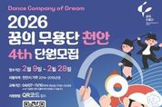 정안뉴스 황도연 기자 | 천안문화재단이 지역 아동의 예술적 감수성과 협업 역량을 키우는 ‘2026 꿈의 무용단 천안’ 단원을 9일부터 28일까지 모집한다. 문화체육관광부가 주최하고 한국문화예술교육진흥원과 재단이 공동 주관하는 이번 사업은 무용 교육과 무대 경험을 연계한 창의 예술 프로그램이다. 올해로 4년 차를 맞는 천안 거점 꿈의 무용단은 △한국무용 △현대무용 △댄스컬을 아우르는 창작중심의 융합형 커리큘럼을 운영한다. 모집 대상은 천안시에 거주하는 2014~2016년생 아동 30명 내외이며, 교육 및 활동은 전액 무료로 운영된다. 신청은 재단 누리집 또는 공식 누리소통망(SNS) 내 온라인 링크 또는 정보무늬(QR코드)로 하면 된다. 자세한 사항은 천안문화재단 축제사업팀으로 문의하면 된다. 재단 관계자는 “아이들이 춤을 통해 자신을 표현하고 건강하게 성장하길 바란다”고 말했다.