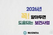 정안뉴스 황도연 기자 | 예산군보건소는 2026년 새해를 맞아 군민에게 필요한 보건사업 정보를 알기 쉽게 전달하기 위해 보건사업 홍보영상을 제작했다고 밝혔다. 이번 홍보영상에는 군민 건강 증진을 위해 보건소에서 추진하는 다양한 사업 내용이 담겼다. 주요 내용은 △50세 이상 무료 대상포진 예방접종 △65세 이상 무료 폐렴구균 예방접종 △의료취약지 원격협진 사업 △정신건강 심리상담 바우처 사업 △치매환자 실종예방 지원사업 △난임 시술비 지원 △취약계층 건강관리 및 환자 병원 이송 사업 등이다. 특히 2026년 신규사업으로 △산후조리원 비용 지원사업 △임산부 진료 교통비 지원사업을 포함해 출산 가정의 경제적 부담을 덜고 의료 접근성을 높이는 사업도 소개됐다. 산후조리원 이용 비용은 최대 100만원까지 지원되며, 임신 중 병·의원 방문에 따른 교통비도 지원받을 수 있다. 보건소 관계자는 “이번 홍보영상을 통해 군민들이 보건소에서 제공하는 다양한 서비스를 쉽게 접하고 적극 활용하길 바란다”며 “앞으로도 군민의 건강한 삶을 위해 최선을 다하겠다”고 말했다.