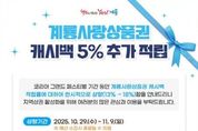 정안뉴스 황도연 기자 | 계룡시는 코리아 그랜드 페스티벌 기간 동안 지역 내 소비 활성화를 위해 모바일 계룡사랑상품권 사용 시 캐시백 적립률을 한시적으로 5% 추가하여 13%에서 18%로 상향한다고 밝혔다. 이번 혜택은 국가단위 할인행사인 ‘코리아 그랜드 페스티벌’ 기간에 맞춰 침체된 지역상권에 활력을 불어넣고, 시민들에게 실질적인 소비 혜택을 제공하기 위한 것으로 10월 29일부터 11월 9일까지 12일간 시행된다. 단, 예산 소진 시 5% 추가 적립은 조기 종료될 수 있다. 모바일 계룡사랑상품권은 행사 기간 동안 18% 캐시백이 적용되며, 종료 후 올해 말까지는 13% 적립률이 유지되고 구매 한도는 월 50만 원, 보유 한도는 100만 원이다. 상품권은 구글 플레이스토어 또는 앱스토어에서 ‘지역상품권 chak’ 앱을 설치한 뒤 회원가입을 통해 간편하게 구매할 수 있다. 시는 이번 캐시백 확대를 통해 시민들의 소비 참여를 유도하고, 소상공인과 영세상권의 매출 증대에 도움이 될 것으로 기대하고 있다. 이응우 계룡시장은 “코리아 그랜드 페스티벌과 연계한 이번 캐시백 혜택이 지