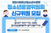 정안뉴스 황도연 기자 | (재)천안시청소년재단 천안시태조산청소년수련관은 내년 1월 9일까지 2026년 청소년운영위원회 신규 위원을 모집한다고 24일 밝혔다. 청소년운영위원회는 청소년활동진흥법에 근거한 청소년 참여기구로, 청소년이 직접 수련관의 프로그램과 시설, 운영 전반에 대해 의견을 제안하고 모니터링하며 개선 방안을 논의하는 역할을 수행한다. 이번에 모집하는 청소년운영위원은 천안시에 거주하거나 학교에 재학 중인 9~24세 청소년이면 누구나 지원할 수 있다. 선발된 위원은 내년 1월부터 12월까지 ▲정기회의 ▲시설 및 프로그램 모니터링 ▲청소년 권익 증진을 위한 제안 활동 등에 참여하게 된다. 활동에 참여한 청소년에게는 위촉장 수여, 자원봉사활동 시간 인정, 청소년 참여기구 활동 확인서 발급, 우수 활동자 표창 등 다양한 혜택이 제공될 예정이다. 김응일 (재)천안시청소년재단 대표이사 직무대행은 “청소년이 단순한 시설 이용자를 넘어 수련관 운영의 주체로 성장할 수 있도록, 청소년운영위원회를 중심으로 다양한 참여 기회를 지속적으로 확대해 나가겠다”고 말했다. 자세한 사항은 천