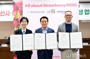 정안뉴스 황도연 기자 | 논산딸기가 전국 230여 개 카페에서 소비자들과 만날 예정이다. 논산시는 29일 충남농업기술원, ㈜다도글로벌(대표이사 오재용)과 상생 업무협약을 맺고 논산 농산물의 전국 유통 확대와 2027 논산세계딸기산업엑스포의 성공 개최를 위한 민·관 협력에 나섰다. 협약에 따라 논산시는 우수 산지 조성을 통해 안정적인 공급망을 구축하고, 농산물 사전 검증과 맞춤형 상품 기획을 담당한다. ㈜다도글로벌은 논산 농산물의 판로를 제공하며, 특히 논산시 농산물을 활용한 신제품 개발에 나선다. 충남농업기술원은 기술지원을 맡는다. ㈜다도글로벌은 카페 드롭탑, 필메이트 등 전국 230여 개 점포를 운영하며 약 450억 원의 매출을 올리는 커피 및 식품서비스 전문 기업이다. 이번 협약을 통해 전국 점포에서 논산의 설향 딸기를 활용한 반짝 매장(팝업 스토어), 포스터 전시 등이 열리며, 2027 논산세계딸기산업엑스포 홍보 활동에 적극 나설 예정이다. 논산시는 이번 협약을 통해 논산의 대표 품목인 딸기의 전국 유통 확대와 함께, 이를 활용한 고부가가치 식품 개발로 이어져 지역 농