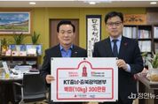 정안뉴스 황도연 기자 | KT충남·충북광역본부가 지난 28일 어려운 이웃을 위해 총 3백만원 상당의 백미(10kg) 95포를 기탁하며 뜻깊은 나눔을 실천했다. 기탁된 백미는 논산시 관내 사회복지시설을 통해 저소득 취약계층에게 전달되어, 시설 입소자들의 따뜻한 겨울나기에 큰 힘이 될 것으로 기대된다. KT충남·충북광역본부 송영태 본부장은 “지역사회의 행복과 건강을 위해 지속적으로 나눔을 실천할 것”이라며 “앞으로도 지역과 함께 성장하는 기업의 책임을 다하겠다”고 말했다. 백성현 논산시장은 “소중한 나눔을 실천해 주신 KT충남충북광역본부에 깊이 감사드리며, 기탁된 물품이 필요한 분들께 잘 전달되어 따뜻한 온기로 이어지도록 최선을 다하겠다”고 전했다.