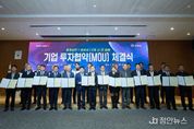 정안뉴스 황도연 기자 | 국내외 기업 투자 유치를 핵심 과제로 추진 중인 힘쎈충남이 이번엔 18개 기업으로부터 4355억 원에 달하는 투자를 끌어내며 지속 가능한 성장 발판을 놨다. 김태흠 지사는 23일 도청 대회의실에서 김석필 천안시장권한대행 등 6개 시군 단체장 또는 부단체장, 박윤수 제이디테크 대표이사 등 18개 기업 대표 등과 투자협약을 체결했다. 협약에 따르면, 18개 기업은 2030년까지 6개 시군 산업단지 등 28만 9360㎡의 부지에 총 4355억 원을 투자해 생산시설을 신증설하거나 이전한다. 이들 기업이 계획대로 가동하는 경우 신규 고용 인원은 899명이다. 구체적으로 자동차 기계부품 업체인 이화다이케스팅은 350억 원을 투자해 평택에서 천안 북부BIT일반산단 1만 7308㎡ 부지에 이전하고 이차전지 전고체 업체인 엔플로우는 160억 원을 투자해 5359㎡ 부지에 공장을 신설하며, 유제품·반려동물 우유 업체인 유담은 335억 원을 투자해 천안 직산면 개별 입지에서 8497㎡ 규모 산단 부지에 이전하는 동시에 생산시설을 넓히기로 했다. 또 반도체 제조 기계설비 업체인 2개