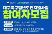 정안뉴스 안정주 기자 | 대구 북구청은 구직 실패와 경제적 부담 등으로 어려움을 겪는 지역 청년들의 사회 진입을 돕기 위해 '2026년 청년도전지원사업' 참여자를 모집한다고 밝혔다. 본 사업은 고용노동부 공모사업으로, 구직 단념 청년 등을 발굴하여 맞춤형 상담, 자신감 회복 프로그램, 취업역량 강화 등 프로그램을 제공함으로써 노동시장 참여를 촉진하는 사업이다. 특히 북구는 2025년 성과 평가에서 ‘우수’ 기관으로 선정되어 사업 운영의 전문성을 인정받은 바 있다. 모집 대상은 6개월 이상 근무·교육·훈련 이력이 없는 만 18세에서 39세 이하의 미취업청년 130명이다. 프로그램은 단기(5주), 중기(15주), 장기(25주) 프로그램으로 나누어 운영되며, 과정을 이수할 경우 50만 원에서 최대 350만 원의 참여 수당과 인센티브가 지급된다. 참여를 희망하는 청년들은 북구청 홈페이지, SNS 등에 게재된 구글 폼(QR코드 스캔)을 통해 신청하거나 운영기관에 방문하여 접수할 수 있다. 배광식 북구청장은 “사회적 고립과 심리적 위축으로 힘들어하는 청년들이 이번 사업을 통해 다시 꿈