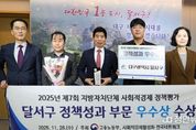 정안뉴스 안정주 기자 | 대구 달서구는 고용노동부와 사회적경제활성화네트워크가 공동 주최한 ‘2025년 지방자치단체 사회적경제 정책평가’에서 정책성과 부문 우수 자치단체로 선정됐다고 밝혔다. 이번 수상은 대구 지역 기초자치단체 중 유일한 성과다. 달서구는 지난 7월 ‘사회적기업 육성 우수 자치단체’에 이어 또다시 우수기관으로 선정되며, 올해 실시된 사회적경제 관련 모든 평가에서 우수 등급을 받은 2관왕의 쾌거를 이뤘다. 이번 평가는 사회적경제의 현재를 진단하고 향후 발전 방향을 모색하기 위해 실시됐으며, ▲ 정책기반 정비, ▲ 지원 수준, ▲ 정책성과, ▲ 거버넌스 수준 등 4개 분야, 17개 지표를 기준으로 전국 광역 및 기초자치단체 가운데 총 11개 기관이 우수 자치단체로 선정됐다. 달서구는 사회적경제 연도별 활성화 계획 수립 등 정책기반 정비, 찾아가는 사회적경제 마켓·사업개발비 지원 등 다양한 현장형 지원 정책, 중앙부처 연계 기업지원 통합설명회 개최, 한국사회적기업진흥원과의 SVI 교육 연계 등 거버넌스 협력 강화 등 모든 분야에서 고르게 높은 평가를 받았다. 특히, 달서구는 대구 기초자치단