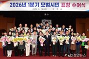 정안뉴스 김재홍 기자 | 진주시는 13일 시청 시민홀에서 지역사회 발전에 기여하고 자발적인 봉사와 나눔을 실천한 시민 90명을 대상으로 ‘2026년 1분기 모범시민 표창 수여식’을 개최했다. 이날 수여식에서는 지역사회 발전을 위해 헌신하고 이웃사랑 실천에 앞장서 온 시민들에게 시정 발전·선행 분야의 모범시민 표창이 수여됐다. 표창을 받은 시민들은 각자의 자리에서 이웃과 지역을 위해 봉사하며 따뜻한 공동체를 만들어 온 공로를 인정받았다. 특히 ▲홀몸 어르신들의 생활환경을 살피고 조손가정 학생 지원에 앞장서 온 ‘박진옥’ 진주백합로타리클럽 회장 ▲암 투병 중인 독거노인을 가족처럼 돌보는 따뜻한 나눔을 실천해 온 ‘박형오’ 씨 ▲진주의 이야기를 담은 도서를 발간해 지역의 가치를 알리고 문화예술 발전에 기여한 ‘이문희’ 도서출판 곰단지 대표 ▲금호지 주변 환경을 내 집 앞마당처럼 가꾸며 깨끗한 지역 환경 조성에 힘써 온 ‘강길봉’ 씨 등이 표창을 받았다. 이 밖에도 지역 곳곳에서 묵묵히 봉사와 나눔을 실천하고 있는 이·통장과 봉사단체 회원 등 많은 시민의 공로가 함께 빛났다. 진주시 관계자는