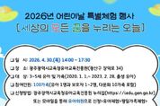 정안뉴스 안정주 기자 | 광주시교육청유아교육진흥원은 ‘제104회 어린이날’을 맞아 오는 4월 30일 본원 실내·외 체험영역 및 시청각실 등에서 어린이날 특별 가족체험 ‘세·모·꿈(세상의 모든 꿈을 누리는 오늘)’ 행사를 개최한다. 이번 행사는 어린이날을 기념해 유아들에게 다채로운 놀이 경험을 제공하고, 가족이 함께 참여하는 건강한 놀이 문화를 확산하기 위해 마련됐다. 행사는 4월 30일 오후 2시부터 5시30분까지 만 3~5세 유아와 가족 등 총 100가정(총 250명 내외)을 대상으로 진행된다. 특히 유아의 발달 단계에 맞춰 ▲우주마을·아이(AI)놀이터 등 10개 실내·외 체험 활동 ▲창의 체험(페이스페인팅, 풍선아트, 고무줄 나비 날리기) ▲특별 공연(버블·매직·레이저 쇼) 등이 운영된다. 폴라로이드 사진 촬영과 돌림판 돌리기 등 가족 단위 부대행사도 열린다. 또 지역 대학과 연계를 통해 ‘예비 유아교사’인 전남대학교 유아교육과 학생 30여 명이 자원봉사자로 활동하며 안전한 놀이를 지원한다. 행사 참여 신청은 오는 31일 오전 9시부터 광주유아교육진흥원 누리집에서 선착