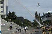 정안뉴스 김재홍 기자 | 김해시도시개발공사 진영스포츠센터는 다가오는 2026년 전국(어울림)생활체육대축전의 성공적인 개최를 대비하여 지난 7일 진영공공체육시설 일원에서 진영119안전센터와 소방합동훈련을 실시했다. 이번 훈련은 체육행사 특성을 고려하여 화재 등 각종 재난 상황 발생 시 신속한 대응체계를 구축하고 유관기관 간 협력 대응능력을 강화하기 위해 마련됐다. 이날 훈련에는 스포츠센터 1층 남자탈의실에 화재가 발생했다고 가정해 센터 자위소방대의 상황 전파 및 화재 초기 진압과 진영119안전센터의 화재진압과 인명구조 및 응급처치 등을 전개했다. 특히 체육행사 관련 시설임을 감안해 맞춤형 대피 유도훈련과 더불어 화재초기 확산을 조기 진압하는 실전형 훈련으로 진행됐다. 센터 관계자는“다가오는 4월, 6월에 개최되는 2026년 전국(어울림)생활체육대축전에서 진영공공체육시설은 축구, 보디빌딩, 휠체어 럭비 경기장으로 지정됐다”며“많은 선수와 시민들이 방문할 것으로 예상되는 만큼 철저한 사전 점검과 훈련을 통해 안전사고 예방에 최선을 다하겠다”고 밝혔다. 진영스포츠센터는 향후에도 지속적인 안전