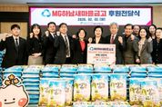 정안뉴스 안정주 기자 | 지난 2일, MG하남새마을금고는 설 명절을 맞아 ‘사랑의 좀도리 운동’의 일환으로 백미 200포 총 2,000kg을 하남시미사강변종합사회복지관에 전달하며 지역사회 내 취약계층 이웃을 위한 따뜻한 나눔을 실천했다. ‘사랑의 좀도리 운동’은 쌀을 한 숟가락씩 덜어 모아 어려운 이웃을 돕는 전통적인 나눔 활동으로, MG하남새마을금고는 오랜 기간 이 운동을 통해 지역사회 취약계층을 위한 나눔을 지속적으로 이어오고 있다. 이번에 전달된 백미 200포는 설 명절을 앞두고 생계 부담이 큰 취약계층 가정에 전달되어 따뜻한 명절을 보내는 데 도움을 줄 예정이다. 이날 전달식에는 MG하남새마을금고 이점복 이사장 및 임직원을 비롯하여 하남시민생안정후원회 한상영 회장, 하남시미사강변종합사회복지관 조혜연 관장, 하남시니어클럽 양우식 관장, LH행복꿈터 지역아동센터 김길임 센터장, 다함께돌봄센터 김고운 센터장이 함께 자리를 빛내주었다. MG하남새마을금고는 매년 백미 지원뿐만 아니라 냉방기기 지원, 김장김치 지원, 생활용품 후원, 지역사회 상생 활동 등 다양한 사회공헌 활동을 통해 지역사회와 함께 성장하는 금융기