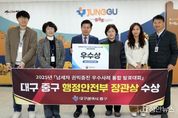 정안뉴스 안정주 기자 | 대구 중구는 지난 20일부터 21일까지 강릉시 세인트존스호텔에서 행정안전부 주최로 열린 ‘2025년 지방세 납세자 권익증진 우수사례 통합 발표대회’에서 우수상을 받았다. ‘지방세 납세자 권익증진 우수사례 통합 발표대회’는 행정안전부가 전국 지자체를 대상으로 납세자 보호제도를 통해 납세자의 애로사항을 해소하고 권익증진 우수사례를 발굴·확산하기 위해 2019년부터 매년 개최하고 있다. 이번 대회에는 전국에서 제출된 91건의 납세자 권익증진 및 편의시책 우수사례 중 서면 평가를 거쳐 선정된 13개 지자체가 참여했으며, 대구 중구는 ‘나도 아이도 행복한 세상, 세금을 직접 찾아드려요’를 주제로 발표해 우수상을 받았다. 구는 출산·양육 가정을 대상으로 하는 주택 취득세 감면 제도가 있음에도 많은 대상자가 규정을 몰라 환급 신청을 놓치고 있다는 점에 주목해, 행정복지센터 출생신고와 취득세 감면 대상 확인을 연계하는 기반을 마련했다. 이에 따라 감면 대상자에게 신청을 안내하는 한편, 공무원이 한국지역정보개발원과 협업해 대상자를 직접 발굴해 29가구에 총 1억 5천여만 원의 취득세를 환급
