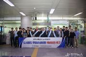 정안뉴스 안정주 기자 | 광주교통공사 노사는 1일 서구 상무역에서 시민들을 대상으로 ‘도시철도 무임 손실 국비 보전 홍보 캠페인’을 펼치고, 무임 승차 적자 문제에 대한 정부 차원의 지원을 촉구하고 나섰다. 이번 캠페인은 전국 6개 도시철도 운영기관 공동협의회의 주도로 서울, 부산, 대구, 인천, 대전, 광주에서 동시다발로 진행됐으며, 각 기관은 유동 인구가 많은 1개 역을 선정해 대시민 홍보 활동을 실시했다. 공사는 유동 인구가 많은 상무역에서 도시철도 이용객들에게 정부 주도의 무임 손실 보전을 요구하는 홍보 전단과 기념품을 배부하며 시민들의 적극적인 관심과 지지를 호소했다. 이 밖에도 공사는 열차 내 안내 방송과 영상 표출을 통해 무임 적자 보존의 필요성에 대한 홍보 활동을 연말까지 지속할 계획이다. 공사 조익문 사장은 “계류 중인 도시철도법 개정안이 조속히 통과되어 빠른 시일 내 국비 지원이 이뤄지길 기대한다”라며, “앞으로도 최상의 교통서비스를 제공할 수 있도록 시민 여러분의 많은 관심을 부탁드린다” 라고 말했다.