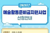 정안뉴스 안정주 기자 | 문화체육관광부는 한국예술인복지재단과 함께 3월 23일부터 4월 17일까지 ‘2026년 예술활동준비금’ 지원 신청을 받는다. ‘예술활동준비금’은 예술 외적인 사유로 예술 활동을 이어가기 어려운 예술인들이 예술활동을 지속할 수 있도록 지원하는 사업이다. 올해는 1만 8천여 명에게 인당 300만 원의 ‘예술활동준비금’을 지원할 계획이며, 중위소득 120%(1인 가구 기준 3,077,086원) 이하인 예술인이 지원 대상이다. ‘예술활동준비금’은 예술활동준비금 시스템을 통해 온라인 또는 우편으로 신청할 수 있다. 제출 서류 등 신청에 필요한 구체적인 사항과 절차는 복지재단 누리집의 사업 공고에서 확인할 수 있다. 특히 올해부터는 현장의 목소리를 반영해 국내에서 거주하는 대한민국 국적의 재외국민 예술인도 일정 요건을 충족하면 사업에 참여할 수 있도록 지원 대상을 확대했다. ‘예술활동준비금’ 지원 대상자는 지원자들의 소득과 선정 이력, 가점 배점을 합산해 높은 점수를 받은 순으로 선정한다. 어려운 여건의 예술인에게 실질적인 도움을 줄 수 있도록 소득이 낮을수록 배점을 크게 했다. 또한 더욱 많은 예