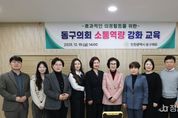정안뉴스 안정주 기자 | 인천 동구의회는 지난 19일 의회 세미나실에서 구의원과 의회사무과 공무원을 대상으로 소통 역량 강화 교육을 실시했다. 이번 교육은 이미지 컨설팅 및 커뮤니케이션 교육 전문강사인 김미선 강사를 초빙해 ‘언어적·비언어적 커뮤니케이션 능력의 활용 및 전략 수립’을 주제로 강의가 진행됐다. 김미선 강사는 이날 갈등 상황에서의 대화 기술과 정책 설명 시 설득력을 높이는 언어적 소통 기법을 소개했다. 아울러 의정활동 과정에서 주민에게 신뢰를 줄 수 있는 이미지 등 비언어적 소통 기법의 중요성도 강조했다. 또한 의원 개인별 이미지에 적합한 표정, 자세, 외형 등 다양한 전략을 제시하며 주민과의 긍정적 첫인상을 형성하고 소통의 신뢰도를 높일 수 있는 실질적인 방법을 안내했다. 유옥분 의장은 “의정활동에서의 소통 능력은 정책 메시지를 효과적으로 전달하는 중요한 역량”이라며, “이번 교육이 의원들이 주민과의 소통에서 신뢰를 구축하고, 의정활동을 보다 원활하게 수행하는 데 큰 도움이 될 것”이라고 말했다.