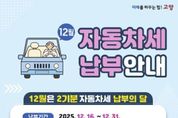 정안뉴스 안정주 기자 | 고양특례시 일산동구는 2025년 제2기분 자동차세 총 69,572건, 약 115억 원을 부과하고, 지난 12일 고지서를 발송했다고 밝혔다. 자동차세 납부 대상은 2025년 12월 1일 기준 차량 소유자(자동차·이륜차·기계 장비 등)로, 차량 운행 여부와 관계없이 자동차등록원부상 명의자에게 부과된다. 자동차세는 후납 방식으로 올해 7월 1일부터 12월 31일까지의 자동차 보유기간에 따라 일할 계산돼 부과된다. 납부 기한은 12월 16일부터 31일까지이며 위택스, 지로, ARS(142211), 전국 은행 ATM(신용카드·현금카드·통장), 가상계좌번호 및 지방세입 계좌 등 다양한 방법으로 편리하게 납부 가능하다. 구 관계자는 “자동차세 납세 의무자는 체납으로 인한 불이익을 받지 않도록 기한 내 납부해 주길 바란다”고 말했다.