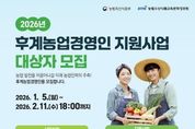 정안뉴스 안정주 기자 | 대구광역시농업기술센터는 미래 농업 인력의 주축이 될 유능한 농업인을 육성하기 위해 ‘2026년도 후계농업경영인 선발’을 위한 신청을 받는다. 후계농업경영인 육성사업은 농업의 지속적인 발전을 이끌 유망한 예비 농업인과 농업경영인을 발굴해, 일정 기간 자금·교육·컨설팅 등을 종합적으로 지원함으로써 정예 농업 인력으로 육성하기 위한 제도다. 신청 대상은 만 18세 이상 만 50세 미만으로, 영농에 종사한 경력이 없거나 10년 미만인 농업인이다. 선발은 서류심사와 평가 절차를 거쳐 최종 확정된다. 선발자에게는 연리 1.5%, 5년 거치 20년 원금 균등분할 상환 조건으로 세대당 최대 5억 원의 정책자금이 융자 지원되며, 지원금은 농지 구입, 시설 설치, 농기계 구입 등 영농 기반 마련에 활용할 수 있다. 신청 기간은 1월 5일부터 2월 11일 오후 6시까지이며, 신청은 온라인으로만 가능하다. 신청을 희망하는 대상자는 차세대 농림사업정보시스템 ‘농업e지’를 통해 온라인으로 신청하면 된다. 신청 마감일에는 접속 지연 등으로 원활한 신청이 어려울