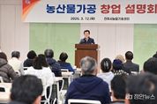 정안뉴스 김재홍 기자 | 진주시는 지난 12일 농업기술센터 교육장에서 소규모 농산물 가공의 창업 기반을 마련하기 위해 농산물종합가공센터 이용자 및 창업에 관심 있는 농업인 50명을 대상으로 ‘농산물 가공 창업 설명회’를 가졌다. 이번 설명회는 농산물 가공 창업에 대한 실무 교육을 비롯해 경남서부지식재산센터, 진주바이오산업진흥원, 진주창업지원센터 등 3개 유관기관의 창업과 관련한 지원사업 설명도 함께 이뤄져 농업인과 유관기관 간의 정보 교류의 장이 되기도 했다. 이날 교육을 맡은 변세광 한국식품산업클러스터진흥원 창업교육부 차장은 ▲농산물 가공 창업의 유형과 절차 ▲식품산업 및 창업 동향 분석 ▲인공지능(AI)을 활용한 사업계획서 작성 및 실무 등 창업 단계에 필요한 유용한 정보를 소개했다. 또한 최준민 경남서부지식재산센터 팀장은 시제품 생산, 포장 디자인, 지식재산권 등 센터에서 추진하는 지원사업의 최신 정보를 제공해 큰 호응을 얻었다. 아울러 홍수영 진주바이오산업진흥원 기업지원실장은 ‘그린바이오벤처캠퍼스’ 사업 설명과 입주 절차를 안내했고, 박상욱 경남창조경제혁신센터 파트장은 진주시 식품기업 육성