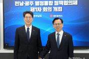 정안뉴스 안정주 기자 | 광주광역시와 전라남도는 권한대행을 중심으로 핵심 국장급 실무진으로 이뤄진 광주·전남 정책협의체를 지난 24일 발족하고, 제1차 회의를 가졌다. 정책협의체는 양 시도 권한대행과 기획조정실장, 자치행정국장, 행정통합실무준비단장 등 총 8명으로 구성된 실무 조정·결정 기구로, 행정통합의 기본 방향 설정, 고위급 소통, 분야별 통합현안의 신속한 의사결정이 필요하다는 공감대 아래 설치키로 사전 합의, 출범하게 됐다. 양 시도는 정책협의체를 통해 부서간 이견 조율이 필요한 통합과제에 대한 공식 협의기구 역할을 수행하게 된다. 또, 실질적인 행정통합 추진을 위한 정부 재정 지원책 마련과 관련 특별법 등 제도 개선 사안에도 공동 대처하기로 뜻을 모았다. 이날 발족과 동시에 광주전남공동혁신도시(나주) 복합혁신센터에서 열린 제1차 회의에서는 협의체 운영안, 주요 통합과제 및 공동 추진안을 논의했다. 정책협의체 운영은 정례 회의와 수시 회의를 병행하되 긴급한 현안에 대해서는 시·공간의 제약 없이 격식 없는 논의를 거쳐 신속한 의사결정을 지원할 방침이다. 양 시도는 특히 조직·인사·