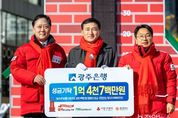 정안뉴스 안정주 기자 | 광주은행은 1일 아시아문화전당 광장에서 열린 ‘희망 2026 나눔캠페인’ 성금 전달식 및 사랑의 온도탑 제막식에 참석해 총 1억4천7백만 원의 성금을 기탁했다고 밝혔다. 광주은행은 지역 대표 금융기관으로서 복지 사각지대 해소와 나눔 문화 확산에 앞장서기 위해 ▲모금 참여 기부금 1천만 원 ▲‘광주·전남愛사랑카드’ 광주 고향사랑기부금 9천1백만 원 ▲범죄피해자 지원금 2천만 원 ▲쌀 기부금 2천6백만 원 등 총 1억4천7백만 원의 성금을 전달했다. 전달된 성금은 광주사회복지공동모금회를 통해 지역의 어려운 이웃들이 보다 따뜻한 겨울을 보낼 수 있도록 다양한 지원 사업에 활용될 예정이다. 광주은행은 이와 별도로 전남 지역에도 ▲모금 참여 기부금 1천만 원 ▲‘광주·전남愛사랑카드’ 전남 고향사랑기부금 6천1백만 원 등 총 7천1백만 원을 기탁할 계획이다. 2018년 창립 50주년을 기념해 출시된 ‘광주·전남愛사랑카드’는 이용액의 일부가 고객이 지정한 광주·전남 사회복지공동모금회에 자동 기부되는 사회공헌형 금융상품이다. 출시 이후 현재까지 약 19억9천만 원을 기부하며 지역사회 나눔