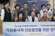 정안뉴스 황은경 기자 | 충북 단양군자원봉사종합센터는 지난 22일 강남베드로병원과 자원봉사자의 건강복지 증진을 위한 업무협약을 체결했다고 밝혔다. 이번 협약은 단양군 자원봉사자들의 건강관리 강화를 통해 안정적인 봉사활동 환경을 조성하고, 지역사회 자원봉사 활성화를 도모하기 위해 추진됐다. 양 기관은 상호 협력체계를 구축해 의료서비스의 질을 높이고, 자원봉사자들이 보다 건강하게 봉사활동에 참여할 수 있도록 지원하기로 했다. 협약에 따라 강남베드로병원은 자원봉사자에게 건강검진, 진료, 사후관리 등 전반적인 의료서비스를 제공하고, 비급여 진료비 감면 혜택과 자원봉사자 맞춤형 종합검진 패키지도 운영할 예정이다. 단양군자원봉사센터는 대상자들의 의료 편의 제공과 홍보를 지원하며, 의료서비스 이용 접근성을 높이는 데 협조한다. 홍민우 단양군자원봉사종합센터장은 “자원봉사자의 건강은 단양군 자원봉사의 든든한 기반”이라며 “이번 협약을 통해 자원봉사자들이 전문적이고 합리적인 의료서비스를 받을 수 있게 되어 매우 뜻깊다”고 말했다. 윤민하 강남베드로병원장은 “의료서비스 접근이 어려운 지역과 함