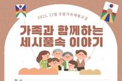 정안뉴스 안정주 기자 | 대구교육박물관은 오는 12월 20일 오전 10시와 오후 2시, 박물관 행복공감실에서 총 2회에 걸쳐 운영되는 12월 주말가족체험교실 ‘가족과 함께 하는 세시풍속 이야기’에 참여할 초등학생을 포함한 16가족(회차별 8가족)을 모집한다. 이번 체험교실은 세시풍속을 주제로 한 탐구 및 표현 활동을 통해 역사적 지식을 함양하고, 역사를 중심으로 미술·실과 등 다양한 교과와의 융합 활동을 통해 학생들의 창의력을 높이고자 마련됐다. 주요 활동은 ▲세시풍속 개념 탐구하기, ▲2026 세시풍속 달력 만들기, ▲세시풍속 카드 놀이 및 보드게임, ▲전시물 탐방 등으로, 가족 간 소통을 촉진하고, 세시풍속의 의미를 자연스럽게 이해할 수 있는 다양한 체험이 진행된다. 박물관은 12월 5일부터 누리집을 통해 참여 신청을 접수하며, 기타 자세한 사항은 교육학예부로 문의하면 된다. 홍진근 관장은 “이번 프로그램을 통해 가족들이 함께 세시풍속의 의미를 배우고 체험하면서, 일상의 쉼 속에서 역사와 문화의 가치를 느끼시길 바란다”며, “앞으로도 박물관이 지역사회와 소통하며 역사와 문화를 확산하는 공간으로