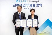 정안뉴스 안정주 기자 | 광주은행은 15일, 라이프케어 전문기업 비즈인사이트(대표 김상수)와 전략적 업무 제휴 협약을 체결했다고 밝혔다. 이번 협약은 양사가 긴밀한 협력 체계를 바탕으로 금융과 라이프케어를 결합한 전용 상품 및 서비스 개발과 공동 마케팅 추진 등 다각적인 제휴를 통해 새로운 디지털 금융 서비스를 선보이기 위한 목적이다. 이날 협약식에는 광주은행 변미경 디지털본부 부행장과 비즈인사이트 김상수 대표가 참석했으며, 변화하는 디지털 환경 속에서 양사가 상호 시너지를 창출하고, 고객 중심의 혁신 서비스를 지속적으로 확대해 나가겠다는 뜻을 모았다. 특히, 양사는 이번 제휴를 통해 전용 상품 및 서비스 개발, 공동 마케팅 등 차별화된 협력 방안을 추진하여, 디지털 전환이 가속화되는 환경 속에서 고객 만족도를 높이는데 주력한다는 방침이다. 한편, 광주은행과 비즈인사이트는 지난 9월 25일부터 ‘와이즈한 웰니스 라이프의 시작’ 이벤트를 진행 중이다. 해당 이벤트는 광주은행 계좌로 급여 또는 연금을 신규 수령하거나, 기존 타행에서 광주은행으로 입금 계좌를 변경한 고객을 대상으로 진행되며, 비즈인사이
