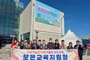 정안뉴스 황은경 기자 | 보은교육지원청은 24일 충북교육문화원 및 생명누리공원 일대에서 열린 ‘2025 공감·동행 충북교육박람회’에 보은지역 학교운영위원회 위원장과 간사, 교감 등 20여 명과 함께 참여했다. 이번 방문은 충북교육이 추진해 온 주요 정책과 타 지역의 교육과정 운영 우수사례를 직접 살펴보고, 이를 보은교육에 접목하여 지속가능한 지역교육 발전의 방향을 모색하기 위한 것이다. 또한 같은 날, 학교운영위원회위원장협의회가 주관한 ‘몸활동 꿈·끼 페스티벌’에는 보은지역 학생들이 참가해 열정을 펼쳤다. ▲동광초 댄스팀(5명) ▲탄부초 난타팀(4명) ▲보은여고 밴드부(7명)가 무대에 올라 학생들의 끼와 재능을 뽐냈으며, 박람회를 찾은 보은 교육공동체는 손수 준비한 간식을 나누며 학생들을 응원했다. 박진섭 보은고등학교 학교운영위원장은 “교육박람회를 통해 충북교육의 다양한 성과를 직접 보고 체험할 수 있어 매우 뜻깊었다”며 “오늘의 경험을 바탕으로 보은교육의 발전을 위해 더욱 노력하겠다”고 말했다. 전병일 보은교육장은 “학생들의 생동감 있는 무대를 보며, 교육의 힘이 결국 ‘현장’과 ‘
