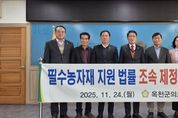 정안뉴스 황은경 기자 | 충북 옥천군의회는 24일 열린 제329회 제2차 정례회 제1차 본회의에서 필수농자재 지원법률의 조속한 제정을 촉구하는 건의안을 만장일치로 채택했다. 통계청 자료에 따르면, 2024년 농가구입가격지수*는 2020년 대비 20.1% 상승했으며, 특히 재료비는 32.5% 급등했다. 반면 농업소득은 957만 원에 불과해 농가 경영난이 심화되고 있다. *농가가 영농에 필요한 각종 자재, 기계, 공산품 등을 구입하는 평균 비용을 산정한 물가지수 현재 ‘필수농자재 지원법’은 국회 농림축산식품해양수산위원회를 통과했으나, 본회의 의결과 시행령 제정 등 후속 절차가 남아있어 실제 시행까지는 상당한 시일이 소요될 전망이다. 이날 건의안에서는 ▷입법 절차의 조속한 완료 및 시행령 제정 등 후속조치 신속 추진 ▷충분한 국비 확보와 지속가능한 중장기 재정 지원방안 마련 ▷적기 지원금 지급과 현장 맞춤형 지원 등 실효성 있는 집행체계 구축을 정부와 국회에 강력히 촉구했다. 추복성 의원은 “법률이 제정되더라도 시행령 제정 등 후속 절차로 인해 실제 지원까지 최소 수개월이 소요될 수 있다”며, “무엇보다