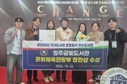 정안뉴스 황은경 기자 | 청주금빛도서관은 22일 수원시 컨벤션센터에서 열린 제62회 전국도서관 대회에서 ‘2025년 도서관 운영 유공’ 우수 도서관으로 선정돼 문화체육관광부 장관상을 수상했다. 도서관 운영 유공 포상은 문화체육관광부가 주관해 도서관 운영 및 서비스 발전에 기여한 우수 도서관에 대해 수여하는 상이다. 올해에는 전국 2만2000여 곳의 공공(작은)·학교·병영·교정시설·전문도서관을 대상으로 △도서관 경영 △인적자원 △정보자원 △시설환경 △도서관서비스의 5개 분야를 심사했으며, 청주금빛도서관은 전국 48개 수상기관 중 하나로 선정됐다. 청주금빛도서관은 지역 내 독서문화 거점으로서 어린이부터 노인까지 모든 연령층을 대상으로 지식정보서비스, 독서문화진흥사업, 복합문화공간을 제공해 지역 독서문화 활성화에 기여한 공로를 인정받았다. 특히 △학군 밀집 여건에 따른 청소년 특화 공간·장서·프로그램 운영을 통한 접근성 향상 △지역 유관기관(육아지원센터, 어린이집, 평생학습관 등)과의 유기적인 협력사업 발굴 △문화소외계층을 위한 맞춤형 독서복지(노인·지역아동·장애인) 서비스 전개 등에서 높은 평가를 받았