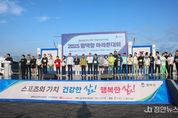 정안뉴스 안정주 기자 | 평택시의회는 19일, 평택항 엠에스로지스틱 일원(평택시 포승읍 신영리)에서 개최된‘2025 평택항 마라톤대회’에 참석해 전국에서 모인 마라토너들의 열정을 응원했다. 이날 행사에는 강정구 평택시의회의장을 비롯한 시의원이 참석하고 평택시 체육회장, 평택시육상연맹 관계자 등 내외빈과 참가자 약 7,300여명이 함께했다. 이번 평택항 마라톤대회는 스트레칭으로 몸을 푼 뒤 하프코스(21.0975km)·10km,·5km 3개 부문으로 나눠 출발했다. 하프코스는 평택당진항 자유무역지역을 지나 평택항 서부두 내항방면을 거쳐 퓨리나 평택공장까지, 10km구간은 서부두 해안도로까지, 5km구간은 평택항 서부두 내항방면까지 각각 반환점으로 삼는 코스다. 강정구 의장은 “마라토너가 달리는 이유는 끝이 아닌 여정 그 자체에 있기에 중요한 것은 완주가 아니라 그 과정 속에서 자신을 발견하는 일”이라며, “평택시의회도 건강한 공동체 속에서 도전의 기쁨을 누릴 수 있도록 생활체육 기반을 튼튼히 다지는 데 최선을 다하겠다”라고 전했다. 한편 올해로 25회를 맞는‘2025 평택항 마라톤대회’는