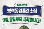 정안뉴스 안정주 기자 | 2026년도 병력동원훈련소집 3월 3일부터 시작됩니다! ■ 동원예비군은? 동원예비군은 현역을 지원하는 보조전력이 아니라 전쟁의 향방을 결정짓는 핵심 전력입니다. 전시 군 전투력 유지를 위한 훈련은 국가적 의무이자 시민적 자부심입니다. ■ 동원훈련 대상은? 병력동원소집 대상자로 지정된 사람으로 전역 후 다음 해부터 예비역 병은 4년 차까지, 간부는 6년 차까지입니다. *개인별 훈련일정은 입영일 7일 전까지 통지서로 안내하고 있습니다. ■ 동원훈련 기간 및 내용은? 군부대에 입영하여 2박 3일 동안 주특기 훈련, 사격, 안보교육 등을 실시합니다. ■ 동원훈련 무단불참자는? 부득이하게 동원훈련에 참여할 수 없는 경우에는 지방병무청으로 연기를 신청하여 승인을 받아야 합니다. 정당한 사유 없이 지정된 일시에 입영하지 아니한 사람은 고발(1년 이하 징역 또는 1천만 원 이하 벌금이나 구류) 조치 됩니다. ■ 동원훈련 참여 예비군 권익보장은? 동원훈련에 참여한 예비군은 교통비 등 여비와 훈련비를 지급 받고,(*'26년 훈련비: 9만 5천 원) 병무청이 선정한 「나라사랑 가게