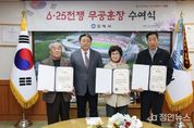 정안뉴스 김재홍 기자 | 김해시는 10일, 6·25전쟁에 참전하여 혁혁한 전공을 세웠음에도 전후 혼란한 상황으로 인해 그동안 훈장을 받지 못했던 故김성수 하사, 故김동준상병, 故유경춘 상병 유족에게 국방부장관을 대신해 화랑무공훈장을 전수했다. 이는 국방부와 육군이 추진하는 ‘6·25 무공훈장 찾아주기 사업’을 통해 약 70여년만에 명예를 되찾아드린 의미 있는 자리였다. 故김동준 상병은 1952년 20세의 나이에 입대하여 강원 철원지구 전투에서 전사했다. 故유경춘 상병은 1952년 22세의 나이에 입대하여 강원 철원지구 전투에서 혁혁한 공을 세웠다. 또한 故김성수 하사는 1950년 19세의 나이에 입대하여 강원 금화지구 전투에서 큰 전공을 세웠다. 훈장을 전수받은 유족들은 "조국을 위해 헌신하신 선친들의 명예를 70년 만에 되찾아주신 것에 깊이 감사드리며, 이런 뜻깊은 자리를 마련해주신 시에도 감사드린다”고 말했다. 홍태용 김해시장은 “이제라도 참전유공자분들의 고귀한 희생을 기리고 명예를 회복시켜 드릴 수 있어 기쁘고 영광스럽다. 국가유공자들의 합당한 예우를 강화하고 그 명예를 드높이는데