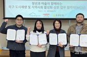 정안뉴스 안정주 기자 | 대구 북구 도시재생지원센터와 지역 청년기업 커뮤니티디자인 내마음은 콩밭 협동조합, 태종기획은 1월 19일 복현어울림센터에서 북구 지역사회 활성화 및 도시재생사업의 효과적인 추진을 위해 상호 협력 강화 업무협약(MOU)을 체결했다. 세 기관은 이번 협약을 통해 도시재생과 커뮤니티디자인, 청년 기획 역량을 연계하여 청년과 마을이 함께 어우러지는 지속 가능한 지역공동체 조성을 목표로 상호 협력해 나가기로 했다. 협약의 주요 내용으로는 ▲북구 도시재생사업과 연계한 커뮤니티 활성화 프로그램 공동 기획·운영 ▲청년 및 대학생의 지역사회 참여 확대를 위한 청년 문화 프로그램 및 역량강화 활동 추진 ▲청년과 주민이 함께 참여하는 주민 주도형 도시재생 프로젝트 협력 ▲도시재생 현장지원 활동 및 주민 교육·컨설팅 사업 공동 추진 등이 포함되어 있다. 특히 이번 협약은 청년의 기획력과 창의성이 마을의 일상과 결합해 청년에게는 지역에서의 실질적인 활동 기회를 제공하고, 마을에는 새로운 활력을 불어넣는 상생 구조를 만들어간다는 점에서 의미가 크다. 김은윤 북구 도시재생지원센터장은 “이번 3자 협약