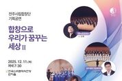 정안뉴스 안정주 기자 | 전주시립합창단(예술감독 겸 지휘자 김철)이 지역사회와 함께 만들어가는 연말 음악 축제를 선보인다. 전주시립합창단은 오는 11일 오후 7시 30분, 한국소리문화의전당 연지홀에서 지역 아마추어 합창단과 함께하는 송년음악회를 개최한다. ‘합창으로 우리가 꿈꾸는 세상Ⅱ’ 제하의 이번 공연에는 전주시립합창단을 비롯해 △좋은친구들남성합창단(지휘 이영수) △전주엘여성합창단(지휘 윤영권) △전북레이디스합창단(지휘 박신) △완주에버그린콰이어(지휘 강연모) △부귀초등학교 꿈드림합창단(지휘 임연정) 등 5개 아마추어 합창단이 무대에 오른다. 특히 이번 공연은 총 200명의 연주자가 참여하는 대규모 연합무대로, 시민들에게 웅장한 합창의 감동을 선사할 것으로 기대를 모은다. 뿐만 아니라 이번 공연에서는 전주를 주제로 한 위촉 초연곡 ‘그곳에서’를 처음으로 선보인다. 홍원표 시인의 시에 전주 출신 작곡가 이범준이 곡을 붙인 이 작품은 전주에 대한 그리움과 사랑, 그리고 다시 만남을 바라는 마음을 담아낸 노래로 구성됐으며, 공연 후반부 연합합창으로 울려 퍼지며 송년 무대의 절정을 장식할 예정이다.