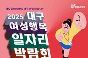 정안뉴스 안정주 기자 | 대구광역시는 여성들의 다양한 취·창업 기회를 지원하고, 경력단절 여성의 사회 복귀를 돕기 위해 ‘2025 대구 여성행복 일자리박람회’를 오는 9월 26일부터 27일까지 양일간 엑스코 동관(전시 5홀)에서 개최한다. 이번 박람회는 ‘여성UP포럼’과 연계해 진행된다. 대구시가 주최하고, 여성취업지원 전문기관인 여성새로일하기센터 대구 지역 5곳(남부·달서·대구·수성·신달서)이 공동 참여하는 이번 박람회에는 출산·육아 등으로 경력이 단절돼 재취업을 꿈꾸는 여성은 물론, 청년 및 중·장년층 여성들에게도 구인 기업과의 현장채용 및 간접채용의 기회를 제공한다. 박람회는 ▲새일홍보관 ▲취업지원관 ▲채용지원관 ▲협력지원관 ▲경력단절예방관 ▲부대행사관 등 6개 영역으로 운영된다. ‘새일홍보관’에서는 새일센터 취업지원 사업과 새일센터 직업교육훈련 과정을 안내하며, ‘취업지원관’에서는 각 센터별 취업 상담사가 박람회에 방문한 구직 여성들에게 채용 정보를 제공한다. ‘채용지원관’에서는 15개 기업이 직접 참여해, 인사 담당자와 구직 여성 간 1:1 현장면접을 통해 118명을 채용할