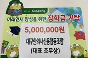 정안뉴스 안정주 기자 | 대구한의사신용협동조합(대표 조무상)은 지난 19일 지역 인재 육성과 교육 발전을 위해 장학금 500만 원을 수성미래교육재단에 기탁했다. 대구한의사신용협동조합은 2021년부터 매년 500만 원씩 장학금을 기탁해 현재까지 총 2,500만 원을 수성미래교육재단에 전달했으며, 지역사회와의 상생을 위해 자선사업과 불우이웃 돕기에도 꾸준히 참여하고 있다. 조무상 대표는 “미래 인재를 양성하고 지역 사랑을 실천하고자 조합원들의 마음을 담아 장학금을 기탁했다”며 “경제적으로 어려움을 겪고 있는 학생들을 위해 다양한 교육사업을 펼쳐주길 바란다”고 말했다. 김대권 이사장은 “수성미래교육재단에 대한 변함없는 관심과 지원에 깊이 감사드린다”며 “기탁해 주신 뜻을 소중히 새겨 학생들에게 실질적이고 지속적인 도움이 될 수 있도록 사용하겠다”고 말했다.