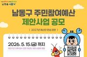 정안뉴스 안정주 기자 | 인천시 남동구는 주민이 직접 지역에 필요한 사업을 제안하고 예산 편성에 참여할 수 있도록 ‘2026년 주민참여예산 제안사업 공모’를 오는 5월 15일까지 진행한다고 2일 밝혔다. 주민참여예산제도는 예산의 편성부터 집행, 결산까지 전 과정에 주민이 참여하는 제도로, 재정 운영의 투명성과 건전성을 높이고 주민 의견을 구정에 반영하기 위해 운영되고 있다. 참여 대상은 남동구민뿐만 아니라 남동구 소재 직장인과 단체까지 포함되며, 제안은 남동구 누리집을 통한 온라인 신청과 함께 사업 제안 신청서를 작성해 우편·팩스·방문으로도 가능하다. 이번 공모는 일상생활 속 불편 해소와 지역 문제 개선을 위한 공공성 있는 사업을 대상으로 하며, 제안사업은 건당 최대 5억 원 이내에서 신청할 수 있다. 다만 예산이 수반되지 않거나 법령 및 예산편성 기준에 맞지 않는 사업, 특정 단체 지원 또는 특정 제품 홍보를 목적으로 하는 사업, 단순 행사·축제성 사업, 중장기 계획이 필요한 사업 등은 공모 대상에서 제외된다. 접수된 제안사업은 관련 부서의 타당성 검토와 주민참여예산위원회 심의, 주민