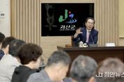 정안뉴스 황은경 기자 | 충북도는 5일 행정동우회(회장 박환규)를 주축으로 한 퇴직 공무원들을 초청해 도정발전 의견을 수렴하는 간담회를 가졌다. 간담회는 1953년 건립 당시의 아름다움을 복원해 지난 11월 27일 재개관한 대회의실에서 김영환 지사 주재 아래 행정동우회원 60여 명이 참석한 가운데 진행됐다. 충북도는 금번 행사는 괄목할 만한 성과를 보이고 있는 도정 발전의 토대를 구축한 퇴직공무원들에게 그간의 노고에 감사의 마음을 전하고, 현재 충북도가 추진하는 혁신 사례에 대한 더 좋은 아이디어를 수렴하는 기회로 삼고자 마련한 것이라고 전했다. 퇴직공무원들은 김영환 지사가 소개하는 주요 혁신 사업들을 청취하고, 문화광장 815, 연못정원, 당산 생각의 벙커를 둘러보며 충북도정의 변화를 몸소 체험하는 시간을 가졌다. 아울러, 오랜 연륜과 경험에서 나오는 다양한 아이디어를 제안하여 향후 충북도가 추진해 나갈 혁신에 박차를 가하는 데 힘을 실었다. 박환규 행정동우회장은 “추운 날씨에 이런 의미 있는 자리에 함께하기 위해 동우회원들이 많이 참석했다. 동우회가 주축이 된 퇴직공무원들이 오늘 도