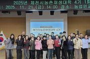 정안뉴스 황은경 기자 | 제천시농촌협약지원센터는 지난 21일 제천시 농촌재생대학 4기 개강식을 개최하며 농촌공간재생 및 공동체조직을 중심으로 한 2025년 마지막 교육과정의 시작을 알렸다. 이번 4기 과정은 30여 명의 주민을 대상으로 12월 5일까지 총 7회에 걸쳐 이론 강의와 현장 실습, 선진지 견학을 아우르며 ‘제천형 농촌재생 전문가’ 양성을 목표로 현장 맞춤형 교육을 진행한다. 제천시 농촌재생대학은 2024년 10월 1기 출범 이후 다양한 교육과정을 운영해왔으며, 2025년 5월 농림축산식품부 ‘2차 농촌협약’ 선정 당시 전국 유일의 농촌 재생 특화 교육 모델로 주목받은 바 있다. 김재연 센터장은 “이론 교육에 머무르지 않고, 현장에서 실제로 발생하는 문제를 주민과 함께 고민하고 해결하며 역량을 쌓는 것이 농촌재생대학의 핵심”이라고 강조하며, “농촌지역 주민 여러분들의 열정적인 참여가 변화를 이끄는 원동력”이라며 감사의 인사를 전했다. 제천시 농촌재생대학은 단순한 이론 전달을 넘어 ‘배움-실천-확산’의 선순환 구조를 통해 지역 농촌의 지속가능한 변화를 이끌 현장 활동가 양성을 지속적으로 이