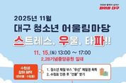 정안뉴스 안정주 기자 | 대구광역시는 11월 15일 오후 1시, 2.28기념중앙공원에서 올해를 마무리하는 ‘청소년 어울림마당’을 개최한다. 특히 이번 행사에서는 수능을 마친 수험생들을 위한 특별한 선물도 준비돼 있다. 대구시가 주최하고 대구행복진흥사회서비스원 청소년활동진흥센터가 주관하는 이번 행사는 청소년들의 자유롭고 창의적인 문화 활동의 장을 마련하기 위해 청소년기획단이 직접 기획하고 운영한다. 이번 11월 청소년 어울림마당은 올해 다섯 번째이자 마지막 행사로, 수험표를 지참한 수험생들에게 특별 선물을 제공하는 이벤트와 함께 다양한 무대 공연과 체험 부스를 운영한다. 오후 1시부터 시작되는 무대 공연에서는 지역 청소년들로 구성된 밴드 무대부터 댄스 퍼포먼스, 비트박스 등 총 18개 팀이 다양한 장르의 공연을 선보일 예정이다. 체험 부스에서는 열전사 사진 체험, 마이디폼블록·쉐이커키링 만들기 등 다양한 활동과 함께 컵케익 데코, 논알콜 칵테일 만들기 등 재밌는 먹거리 체험도 제공된다. 부스에 참가하면 기념품도 받을 수 있다. 박윤희 대구광역시 청년여성교육국장은