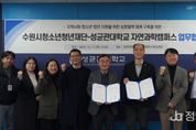 정안뉴스 안정주 기자 | 수원시청소년청년재단은 11일 성균관대학교 자연과학캠퍼스와 청소년ㆍ청년의 취‧창업 지원과 전인적 성장을 위한 업무협약(MOU)을 체결했다고 밝혔다. 이번 협약을 통해 양 기관은 △대학생 연계사업 활성화를 위한 지속적인 교류활동 추진 및 내실화 △청소년의 진로 탐색을 위한 멘토링 및 학과 탐방 기회 제공 △기타 상호 협력이 필요하다고 인정되는 분야에서의 협조 체계를 구축할 예정이다. 재단 관계자는 "이번 협약이 단순한 형식적 절차에 머무르지 않고 우리 청소년‧청년들에게 새로운 경험과 지속적인 성장의 기회를 제공하는 중요한 출발점이 되기를 희망한다"며, "협약의 성공적인 이행을 위해 상호 긴밀하게 협력해 나갈 것"이라고 밝혔다.