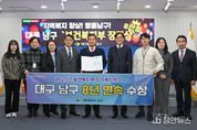 정안뉴스 안정주 기자 | 대구 북구청은 ‘2025년 아이돌봄서비스 제공기관 평가’에서 대구북구가족센터가 우수기관으로 선정되어 성평등가족부 장관상을 수상하는 성과를 얻었다고 밝혔다. 이번 평가는 성평등가족부가 전국 225개 아이돌봄서비스 제공기관을 대상으로 아이돌봄서비스 성과 및 제공, 아이돌보미 확보 등 서비스 제공기관 운영 전반에 대해 4개 평가영역, 12개 세부 지표를 기준으로 종합 평가해 우수기관을 선정했다. 대구 북구는 아이돌봄서비스의 안정적인 운영과 체계적인 관리, 아이돌보미 역량 강화 및 이용가정 만족도 향상 등에서 높이 평가받아 이번 수상의 영예를 안았다. ‘아이돌봄서비스’는 양육 공백이 생긴 가정의 12세 이하 아동을 대상으로 아이돌보미가 직접 가정을 방문해 돌봄을 제공하는 정부 지원 사업으로, 맞벌이 부부 등 돌봄이 필요한 가정의 육아 부담을 줄이는 핵심 복지 서비스다. 현재 북구에는 290여 명의 아이돌보미가 활동하며 맞벌이 가정의 돌봄 공백을 최소화하고 있다. 정은희 대구북구가족센터장은 “이번 수상을 계기로 앞으로도 촘촘한 돌봄 체계를 기반으로 지역사회와 함께 돌보는