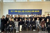 정안뉴스 안정주 기자 | 대구광역시와 계명대학교 대구국제개발협력센터는 12월 17일 오후 3시, 륜(수성구)에서 ‘2025년도 대구 ODA 사업 수주성과 사례공유회’를 개최했다. 이번 행사는 올해 대구·경북 지역 기관과 기업들이 수행한 공적개발원조(ODA) 사업의 수주 성과를 공유하고, 향후 국제개발협력 역량 강화를 위한 지역 협력 기반을 다지기 위해 마련됐다. 행사에는 대구시와 대구국제개발협력센터를 비롯해 다이텍연구원, ㈜지오씨앤아이, 한국교통안전공단, 새마을재단 등 주요 기관·기업 관계자 35명이 참석했다. 성과 발표에서는 AI 기반 국토·토지정보 관리 솔루션 제공기업인 △㈜지오씨앤아이의 라오스 농지정보 구축사업 △한국교통안전공단의 가나 드론 기반 개발 로드맵 수립 사업 △다이텍연구원의 타지키스탄 섬유산업 역량강화 사업 △새마을재단의 코트디부아르 농촌개발사업 등 다양한 ODA 사업 사례가 소개됐다. 정상희 계명대학교 교수가 좌장을 맡은 토론에서는 지역 ODA 사업의 확장 가능성과 기관 간 협업 전략, 신규사업 발굴 방향 등에 대한 다양한 의견이 논의됐다. 참석자들은 현장 경험을 바탕