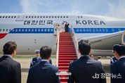 정안뉴스 안정주 기자 | 이재명 대통령과 김혜경 여사는 5박 6일 일정의 인도 및 베트남 국빈 방문을 위해 19일 경기 성남 서울공항에서 대통령 전용기(공군 1호기)를 이용해 출국했다. 이 대통령은 고속 성장 중인 두 국가 방문을 통해 우리의 외교 지평을 넓히고 핵심 분야에서 전략적 협력을 고도화하는 데 집중할 것으로 기대된다. 이 대통령은 19일부터 21일까지 2박 3일간 인도 뉴델리를 국빈 방문한다. 우리나라 대통령의 인도 방문은 8년 만이며 역대 정부 출범 이후 최단 기간 내 국빈 방문이다. 이 대통령은 20일 공식환영식을 시작으로 나렌드라 모디 인도 총리와 소인수회담·확대회담, 양해각서(MOU) 교환식, 공동 언론발표 등 일정을 갖는다. 이 대통령은 한-인도 비즈니스 포럼에도 참석해 양국 주요 경제계 인사와 양국의 강점과 수요가 맞닿아 있는 분야를 중심으로 호혜적 협력 방안을 모색한다. 위성락 국가안보실장은 이번 인도 방문의 기대 성과에 대해 "이번 국빈 방문을 통해 한-인도 간 특별전략적동반자관계를 전방위적으로 강화하고 호혜적, 전략적 협력 확대를 위한 비전을 제시할 것"이