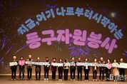 정안뉴스 안정주 기자 | 2025년 동구자원봉사자대회가 지난 16일 아양아트센터에서 개최됐다. ‘지금 여기, 나로부터 시작하는 자원봉사!’라는 슬로건으로 진행된 이날 행사는 600여명의 자원봉사단체 회원들이 한자리에 모여 축하공연, 영상 상영, 자원봉사 유공자 표창 등의 순서로 진행됐다. 홍창식 동구자원봉사센터 이사장은 “올 한 해 동안 우리 지역 곳곳에서 따뜻한 손길을 내밀고, 보이지 않는 곳에서 묵묵히 빛이 되어주신 자원봉사자 여러분께 감사의 마음을 전하며, 2026년에도 행복과 희망을 주는 동구자원봉사센터가 되기 위해 최선의 노력을 다하겠다”고 말했다. 윤석준 동구청장은 “2025년 한 해 동안 보여주신 자원봉사자 여러분의 헌신에 깊이 감사드리며, 이 행사를 통해 지역사회에 자원봉사가 더욱 확산되고, 나눔의 문화가 생활 속에 정착되는 계기가 되길 바란다”고 했다.