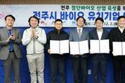 정안뉴스 안정주 기자 | 첨단바이오 분야 기술력을 보유한 국내 기업들이 전주에 둥지를 틀면서 바이오산업을 새로운 성장동력으로 육성해 온 전주시의 계획에 힘이 실리게 됐다. 전주시는 2일 전주시청 3층 소회의실에서 파마로보틱스와 뉴아인, 하이퍼틱스 등 첨단바이오 분야 기술력을 보유한 3개 기업과 공동 성장을 위한 업무협약을 체결했다. 이날 협약식에는 우범기 전주시장과 세 기업의 대표 등 관계자 8명이 참석했으며, 이들은 기업 애로 해소와 산업 생태계 확장을 위한 상생 협력에 나서기로 뜻을 모았다. 이 자리에서 시는 현재 추진 중인 연구개발 인프라 조성 계획과 바이오산업 육성 방향을 설명하고, 기업들로부터 이전 계획과 기술개발 현황, 필요한 지원 사항 등을 청취했다. 특히 이번에 협약을 맺은 기업들은 모두 첨단 의료기기와 전자약 분야에서 경쟁력을 인정받은 기술 기반 기업들로 지역 바이오산업 성장을 위한 동력이 될 것으로 기대를 모은다. 구체적으로 파마로보틱스는 AI 기반 주사제 자동조제 로봇을 개발하며 TIPS와 초격차 1000+ 등에 선정된 성장기업으로, 지난 10월 본사를 전주로 이전했