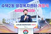 정안뉴스 안정주 기자 | 구리시 수택2동 행정복지센터는 지난 2월 4일 오후 2시, 신청사 이전에 따른 개청식을 개최했다. 이날 행사에는 백경현 구리시장을 비롯해 지역 기관·사회 단체장과 지역 주민 등 200여 명이 참석한 가운데, 리본 커팅식을 시작으로 경과보고, 유공자 표창, 기념사와 축사, 축하공연, 떡케이크 커팅식, 시설 관람 순으로 진행되며 신청사 개청을 함께 축하했다. 기존 수택2동 행정복지센터 청사는 1989년 입주 이후 약 37년이 지나면서 시설 노후화와 주차 공간 부족, 승강기 미설치 등으로 민원인 이용에 불편이 컸다. 이에 구리시는 증가하는 행정수요에 대응하고 주민 중심의 행정서비스를 실현하기 위해 2014년 6월 건립계획을 수립했으며, 주민 의견 수렴을 거쳐 2023년 7월 착공해 2025년 12월 지하 3층, 지상 4층, 연면적 6,521㎡ 규모의 신청사를 완공했다. 백경현 구리시장은 “행정복지센터 건립을 위해 적극 협조해 주신 주민과 관계자 여러분께 깊이 감사드린다”라며 “새롭게 개청한 수택2동 행정복지센터가 주민의 불편과 어려움에 공감하고 함께 해결해 나가는 따뜻한 행정의 중심 공간이