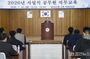 정안뉴스 김재홍 기자 | 창녕군은 26일 시설직 공무원 60명을 대상으로 2026년 예산실무 및 공사감독 능력 향상을 위한 ‘시설직 공무원 직무교육’을 실시했다. 이번 교육은 예산 편성부터 집행까지 예산실무와 설계도서 작성 및 해석으로 업무 능력을 배양하고 공사감독자의 직무능력 향상으로 견실시공을 도모하기 위해 마련됐다. 주요 내용으로 △예산 편성 및 집행 실무 △건설공사 단계별 감독 역할 및 주의점 △건축물 철거 등 분리 발주 분야 △토목 관련 용어 정리 및 감사지적 사례 등 실무에 필요한 핵심 주제로 구성됐으며, 신기술제품 우선구매율 제고를 위한 설명도 포함됐다. 성낙인 군수는 “이번 직무교육과 건설교통과장 주재 시설직 학습동아리 운영으로 직원의 기술력 강화와 실무 지식 공유, 문제 해결 능력을 높이고, 업무 전문성 확보로 행정 신뢰도와 주민 만족도를 높이겠다”고 말했다. [뉴스출처 : 경상남도 창녕군]